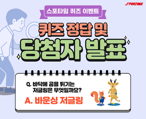 ÄûÁî '¹Ù´Ú¿¡ °øÀ» Æ¢±â´Â Àú±Û¸µÀº ¹«¾ùÀϱî¿ä?'ÀÇ Á¤´äÀº 3¹ø ¹Ù¿î½Ì Àú±Û¸µÀ¸·Î Á¤´äÀÚ 10¸íÀ» Ãß÷ÇÏ¿© ½ºÆ÷ŸÀÓ ±³±¸·Î ±¸¼ºµÈ ·£´ý¹Ú½º¸¦ º¸³»µå¸± ¿¹Á¤ÀÔ´Ï´Ù.
