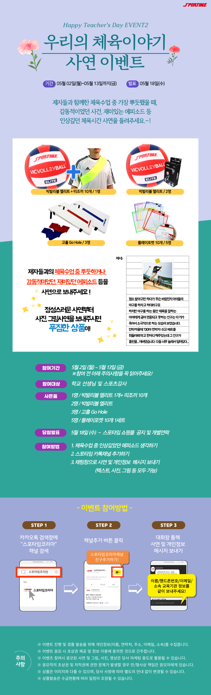 ![]() Á¦ÀÚµé°ú ÇÔ²²ÇÑ Ã¼À°¼ö¾÷ Áß °¡Àå »ÑµíÇßÀ» ¶§, °¨µ¿ÀûÀ̾ú´ø »ç°Ç, Àç¹ÌÀÖ´Â ¿¡ÇÇ¼Òµå µî Àλó±í´ø üÀ°½Ã°£ »ç¿¬À» µé·ÁÁÖ¼¼¿ä.~! <À̺¥Æ® Âü¿©¹æ¹ý> * Âü¿©±â°£ : 5¿ù 2ÀÏ (¿ù) ~ 5¿ù 13ÀÏ (±Ý) * Âü¿©´ë»ó : Çб³ ¼±»ý´Ô ¹× ½ºÆ÷Ã÷°»ç * »çÀºÇ° : 1¸í / ºò¹ß¸®º¼ ¿¤¸®Æ® 1°³+ ¶ìÁ¶³¢ 10°³ 2¸í / ºò¹ß¸®º¼ ¿¤¸®Æ® 3¸í / °íȦ Go Hole 5¸í / Ç÷¹ÀÌÆ÷ÄÏ 10°³ 1¼¼Æ® * Âü¿©¹æ¹ý : 1. üÀ°¼ö¾÷ Áß Àλó±í¾ú´ø ¿¡ÇÇ¼Òµå »ý°¢Çϱâ 2. ½ºÆ÷ŸÀÓ Ä«Ååä³Î Ãß°¡Çϱâ 3. äÆÃâÀ¸·Î »ç¿¬ ¹× °³ÀÎÁ¤º¸ ¸Þ½ÃÁö º¸³»±â (ÅØ½ºÆ®, »çÁø, ±×¸² µî ¸ðµÎ °¡´É) * ´ç÷¹ßÇ¥ : 5¿ù 18ÀÏ (¼ö) - ½ºÆ÷ŸÀÓ ¼îÇθô °øÁö ¹× °³º°¿¬¶ô ½ºÆ÷ŸÀÓ Ä«Ä«¿Àä³Î Ä£ÃßÇϰí üÀ°À̾߱⸦ µé·ÁÁÖ¼¼¿ä¡å <ÁÖÀÇ»çÇ×> ¡Ø À̺¥Æ® ÁøÇà ¹× °æÇ° ¹ß¼ÛÀ» À§ÇØ °³ÀÎÁ¤º¸(À̸§, ¿¬¶ôó, ÁÖ¼Ò, À̸ÞÀÏ, ¼Ò¼Ó)¸¦ ¼öÁýÇÕ´Ï´Ù. ¡Ø À̺¥Æ® ÀÀ¸ð ½Ã ÃÊ»ó±Ç Á¦°ø ¹× Á¤º¸ À̿뿡 µ¿ÀÇÇÑ °ÍÀ¸·Î °£ÁÖÇÕ´Ï´Ù. ¡Ø À̺¥Ã÷ Âü¿©½Ã ÀÀ¸ðµÈ »ç¿¬ ¹× ±×¸², »çÁø, ¿µ»óÀº ´ç»ç ¸¶ÄÉÆÃ ¿ëµµ·Î Ȱ¿ëµÉ ¼ö ÀÖ½À´Ï´Ù. ¡Ø ÀÀ¸ðÀÛÀÇ ÃÊ»ó±Ç ¹× ÀúÀ۱ǿ¡ °üÇÑ ¹®Á¦°¡ ¹ß»ýÇÒ °æ¿ì ¹Î/Çü»ç»ó Ã¥ÀÓÀº ÀÀ¸ðÀÚ¿¡°Ô ÀÖ½À´Ï´Ù. ¡Ø »óǰÀº À̹ÌÁö¿Í ´Ù¸¦ ¼ö ÀÖÀ¸¸ç, ´ç»ç »çÁ¤¿¡ µû¶ó º°µµÀÇ ¾È³» ¾øÀÌ º¯°æµÉ ¼ö ÀÖ½À´Ï´Ù. ¡Ø »óǰ¹ß¼ÛÀº ¼ö±ÞÇöȲ¿¡ µû¶ó ÀÏÁ¤ÀÌ Á¶Á¤µÉ ¼ö ÀÖ½À´Ï´Ù. |