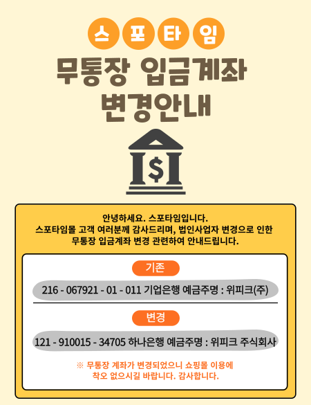 [°øÁö] ½ºÆ÷ŸÀÓ ¼îÇθô ¹«ÅëÀå ÀԱݰèÁ º¯°æ¾È³»