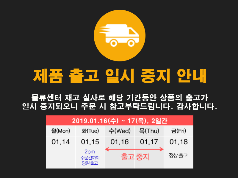 --- ½ºÆ÷ŸÀÓÀÔ´Ï´Ù. ¹°·ù¼¾ÅÍ Àç°í ½Ç»ç·Î ÇØ´ç ±â°£µ¿¾È »óǰ Ãâ°í°¡ ÀϽà ÁßÁöµÇ¿À´Ï ÁÖ¹®½Ã Âü°í ºÎʵ右´Ï´Ù. °¨»çÇÕ´Ï´Ù. Ãâ°í ÀϽà ÁßÁö ±â°£ : 2019.01.16(¼ö) ~ 17(¸ñ) 2Àϰ£ ¡Ø 15ÀÏ ¿ÀÈÄ 2½Ã±îÁö ÁÖ¹®µÈ »óǰ¿¡ ÇÑÇÏ¿© ´çÀÏ Ãâ°íµÇ¸ç, |