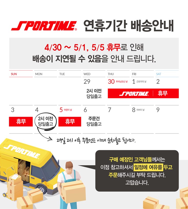 5¿ù ¿¬ÈޱⰣ ¹è¼ÛÁö¿¬ ¾È³»(¼®°¡Åº½ÅÀÏ /±Ù·ÎÀÚÀÇ ³¯ / ¾î¸°À̳¯)