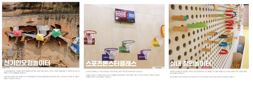 ³îÀÌ, °¨¼º, ÇнÀ ¿¬°èȯ°æ¿¡¼ °Ç°ÇÑ ¼ºÀå°ú ±âÃÊ ½Åü°ü¸®±â¼ú ´É·ÂÀ» Çâ»óÇÒ ¼ö ÀÖ´Â ÇÁ·Î±×·¥°ú ½Ç³» GYMÀÇ ÅëÇÕÀ¸·Î ÁַΠģȯ°æ ¿ø¸ñÀ» ÁÖ¿ä ÀçÁú·Î »ç¿ëÇÑ ´Á¸ñ, ½ºÀ®, ¸ÅÆ® µî Áü³ª½ºÆ½, ÇÇÆ®´Ï½º Àåºñ¿Í À¯ÈÞ°ø°£À» Ȱ¿ëÇÏ¿© Àü¹® Áü³ª½ºÆ½ °ø°£À» ¸¸µé¾î µå¸³´Ï´Ù.